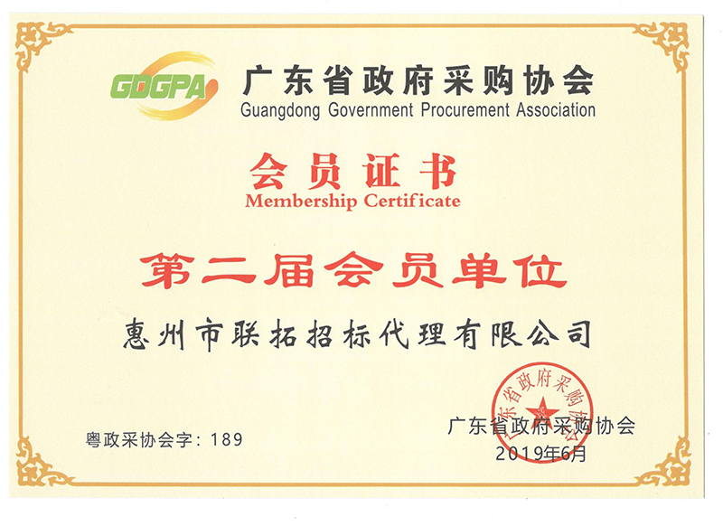廣東省采購協(xié)會會員證書